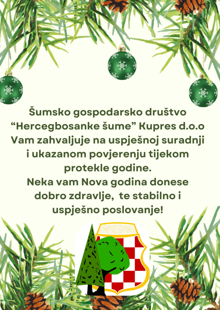 Novogodišnja čestitka Šumsko gospodarskog društva “Hercegbosanske šume” Kupres d.o.o