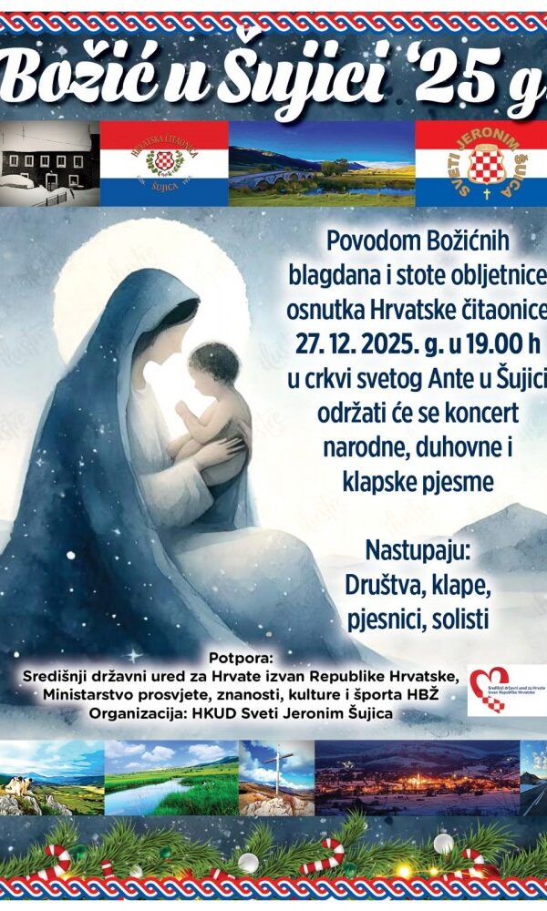 „Božić u Šujici 2025.“ – koncert duhovne i klapske pjesmeRedakcija23.12.2025U povodu božićnih blagdana, na blagdan Svetog Ivana, 27. prosinca ... Pročitaj više