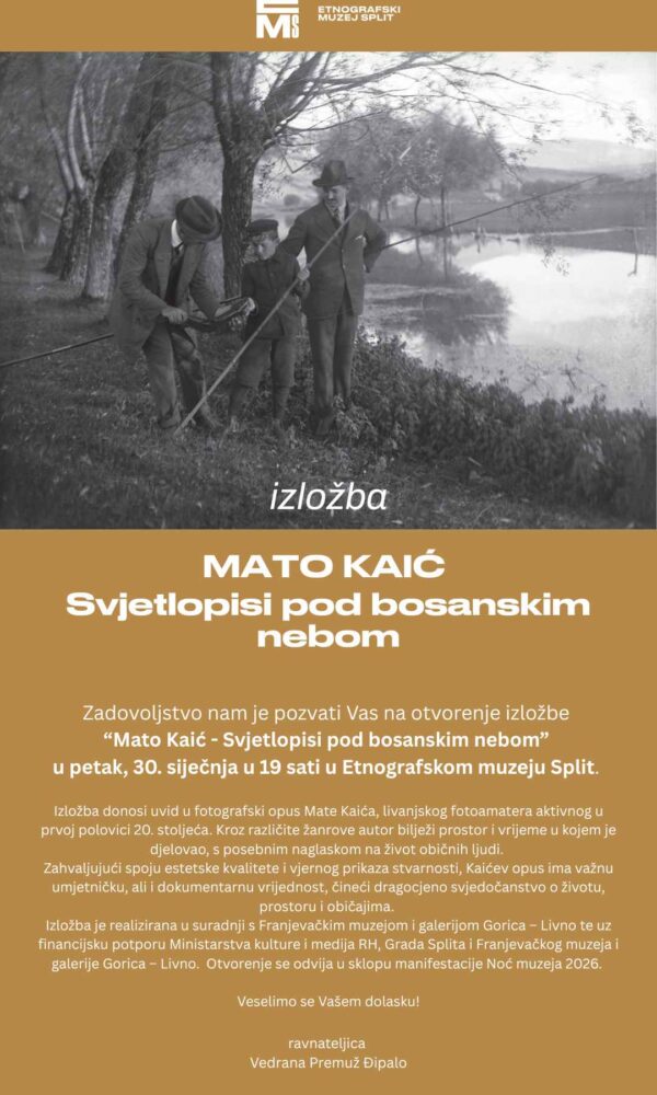 U Splitu otvorenje izložbe „Mato Kaić – svjetlopisi pod bosanskim nebom“Redakcijaprije 6 danaFranjevački muzej i galerija Gorica – Livno poziva sve Livnjake, ... Pročitaj više