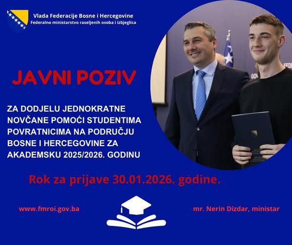Cilj ovog javnog poziva je podrška studentima povratnicima, demografskom osnaživanju i ostanku mladih u Bosni i Hercegovini