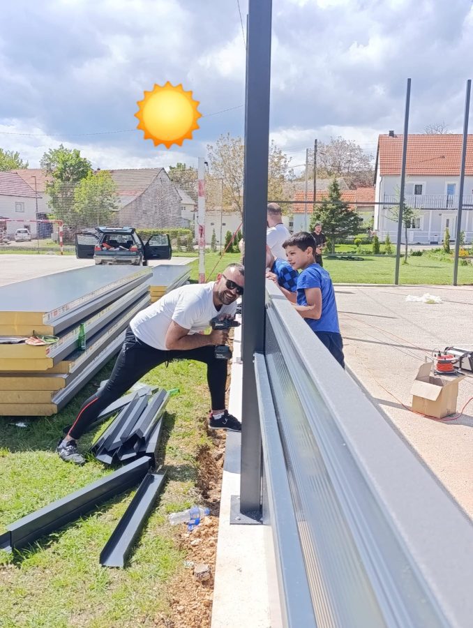 U subotu su mještani sela Kola u Tomislavgradu bili vrijedni. Uz pomoć mještana uspješno su odradili važan korak u izgradnji stadiona za nogomet i odbojku. Postavili su konstrukciju i panele, a u narednim će se danima izvršiti postavljanje umjetne trave te zatvaranje objekta. Završetak radova i puštanje stadiona u funkciju ovisit će o vremenskim uvjetima i volonterima, ali svi smo uvjereni da će projekt biti uspješno realiziran u skoroj budućnosti.