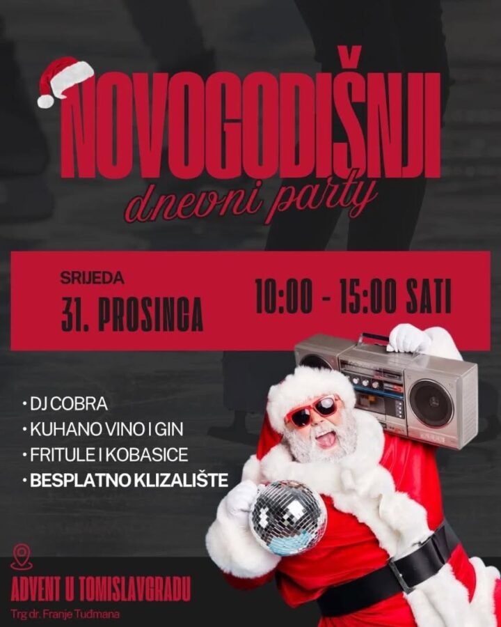 Pridružite nam se na Novogodišnjem dnevnom partyju u srijedu, 31. prosinca, od 10 do 15 sati na Adventu u Tomislavgradu.
