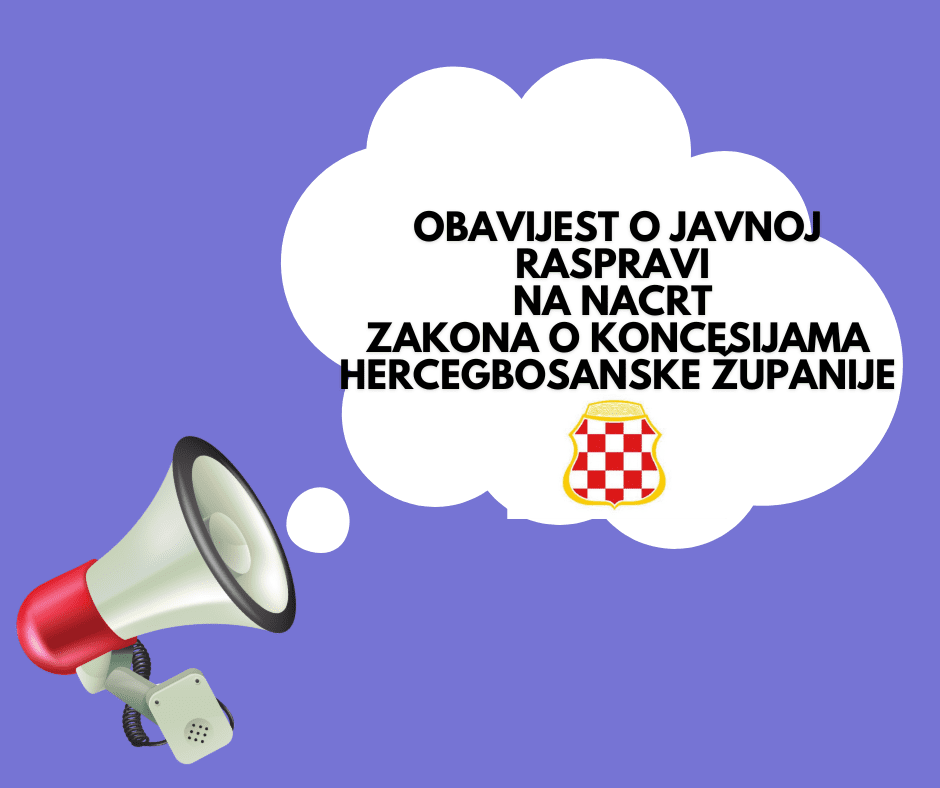 Ministarstvo gospodarstva Hercegbosanske županije obavještava zainteresiranu javnost da je izradilo Nacrt Zakona o koncesijama i uputilo ga u redovitu zakonodavnu proceduru.