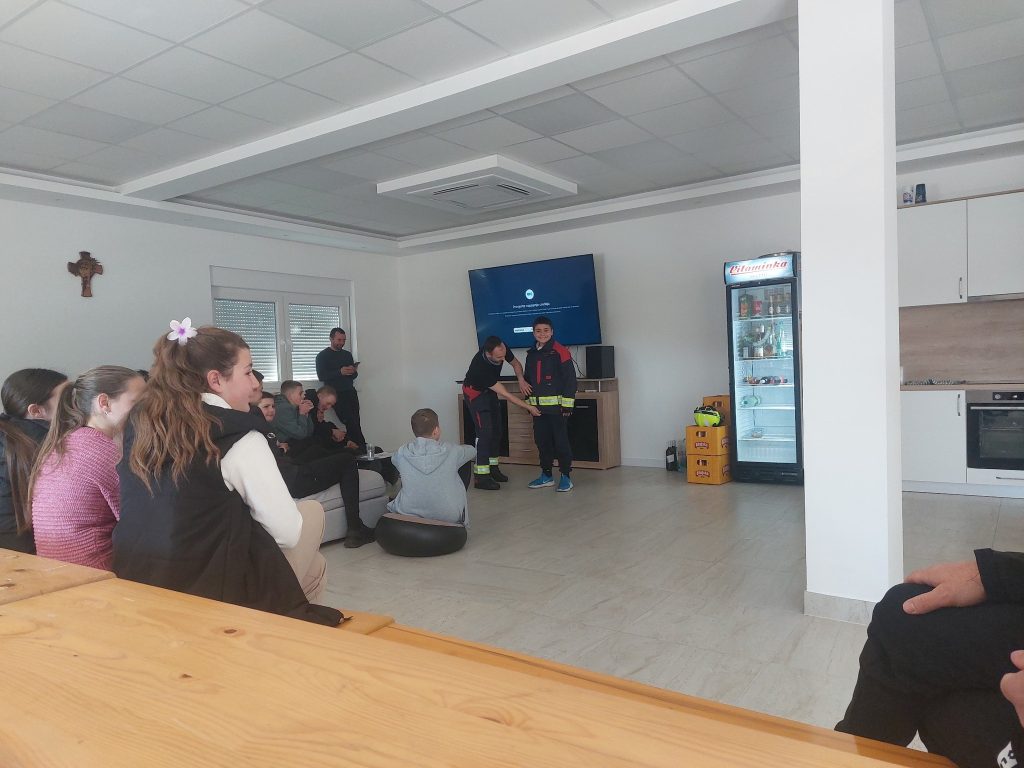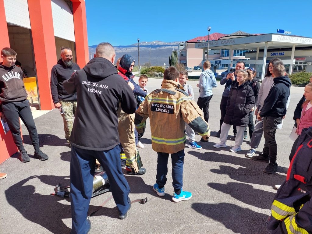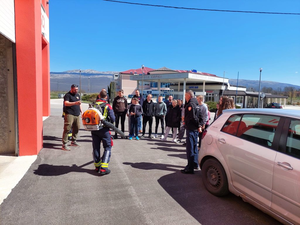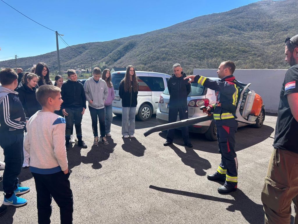 Ekipa iz Ornitološkog društva Naše ptice dovela je  u posjet djecu od 6. do 9. razreda Osnovne škole Ivan Goran Kovačić, Područna škola Orguz. Razlog posjete je da se djeci pokaže osnovna oprema koju koriste vatrogasci, da im se objasni sami postupak gašenja požara ali ponajviše da im se ukaže na probleme koji dolaze nesavjesnim paljenjem i koliko toliko podigne svijest o svim tim problemima s kojima se suočavamo. U toku predavanja im je prikazan i videoprilog snimljen na temu požara u Livanjskom polju.