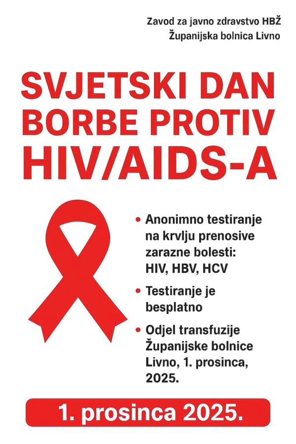 Svjetski dan borbe protiv HIV/AIDS-A obilježava se u ponedjeljak, 1.12.2025. godine.