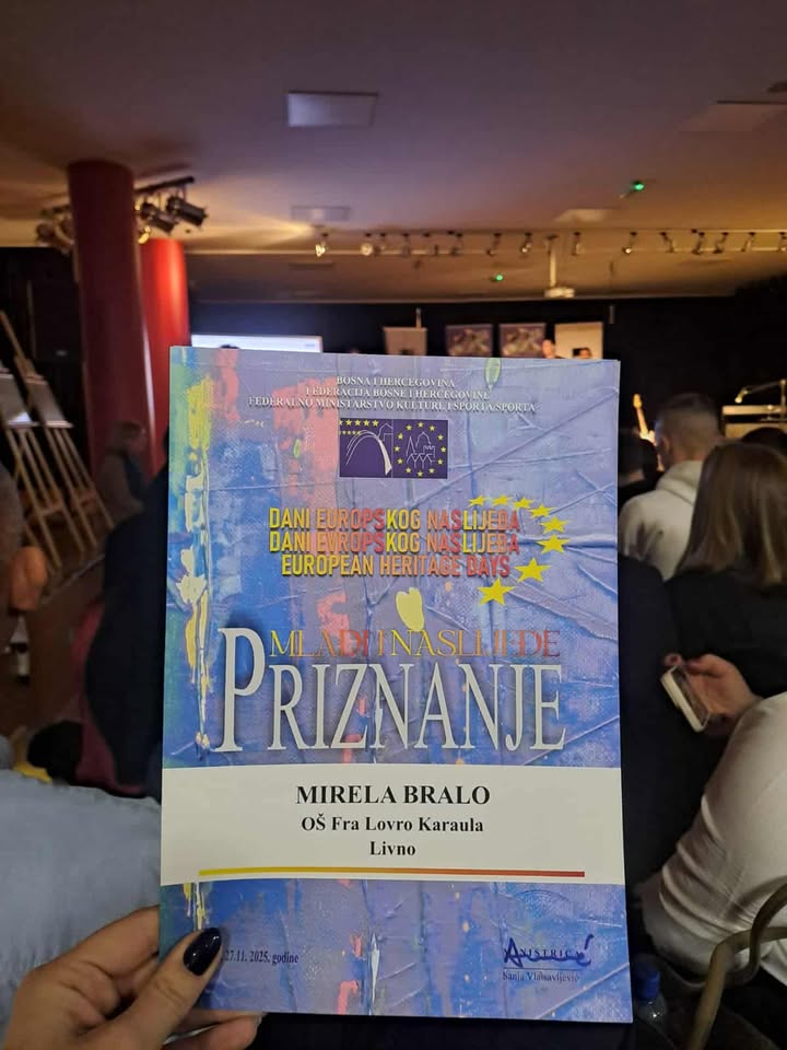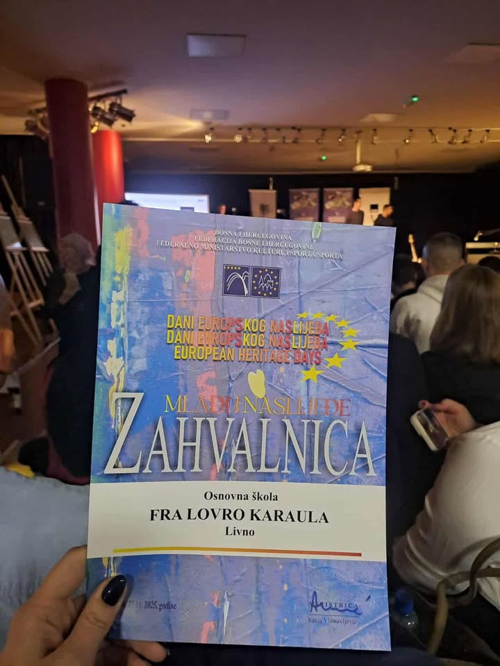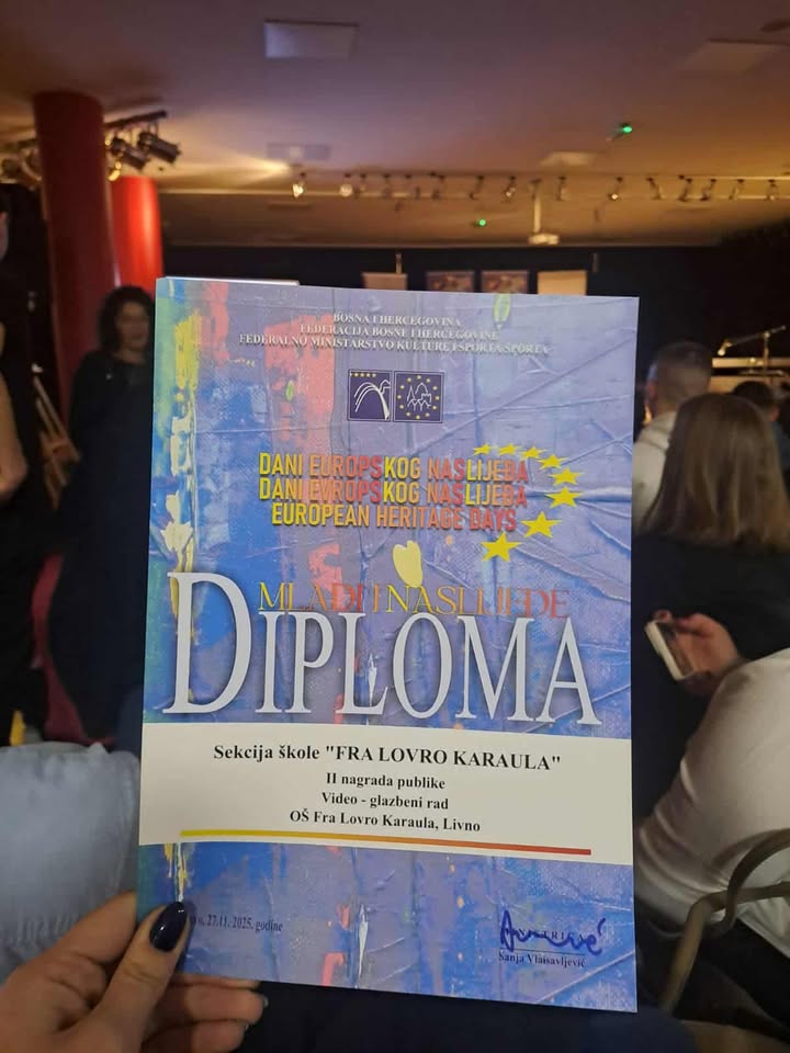OŠ “Fra Lovro Karaula” danas je primila vrijedno priznanje na manifestaciji “Mladi i nasljeđe”, koju organizira Federalno ministarstvo kulture i sporta. Učenice škole osvojile su 2. mjesto za izvedbu pjesme “Ovce čuva Marica”, izvedenu u sklopu video-spota korištenog u filmu “Ujak”.