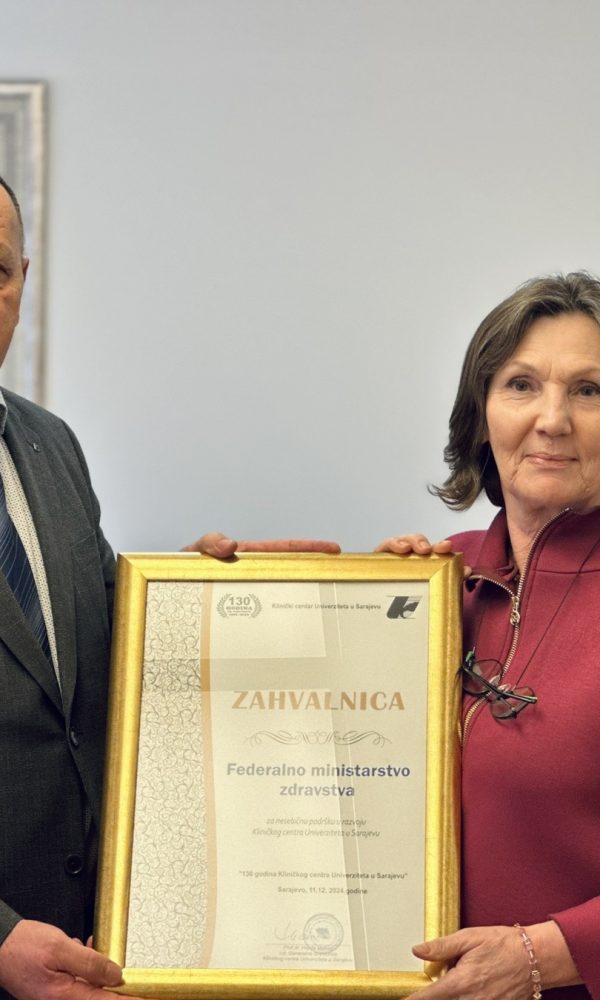 Zahvalnica KCUS-a Federalnom ministarstvu zdravstva za izuzetan doprinos razvoju ove zdravstvene ustanoveRedakcija14.02.2025Federalni ministar zdravstva dr. Nediljko Rimac susreo se s v.d. ... Pročitaj više