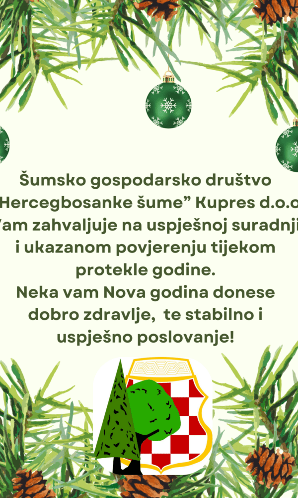 Novogodišnja čestitka Šumsko gospodarskog društva “Hercegbosanske šume” Kupres d.o.oRedakcijaprije 2 tjednaŠumsko gospodarsko društvo “Hercegbosanke šume” Kupres d.o.o Vam zahvaljuje na ... Pročitaj više