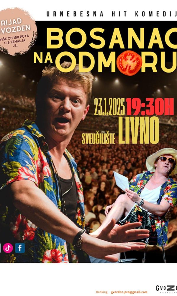 Hit komedija u LivnuRedakcija14.01.2025Urnebesna hit komedija Bosanac na odmoru humoristična je ispovijest supruga ... Pročitaj više