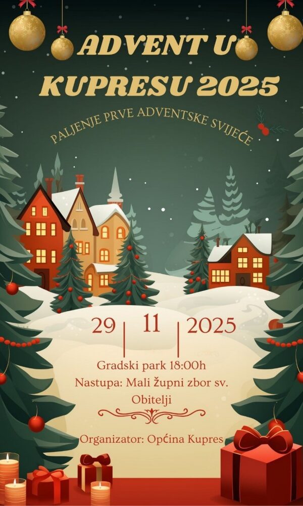 Advent u Kupresu 2025: Paljenje prve adventske svijeće sutra u gradskom parkuRedakcijaprije 2 danaKupres je ponovno obukao svoje zimsko, blagdansko ruho – lampice ... Pročitaj više
