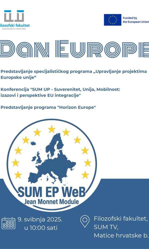 Filozofski fakultet Mostar domaćin obilježavanja Dana EuropeRedakcija08.05.2025U petak, 9. svibnja 2025., Filozofski fakultet Sveučilišta u Mostaru ... Pročitaj više