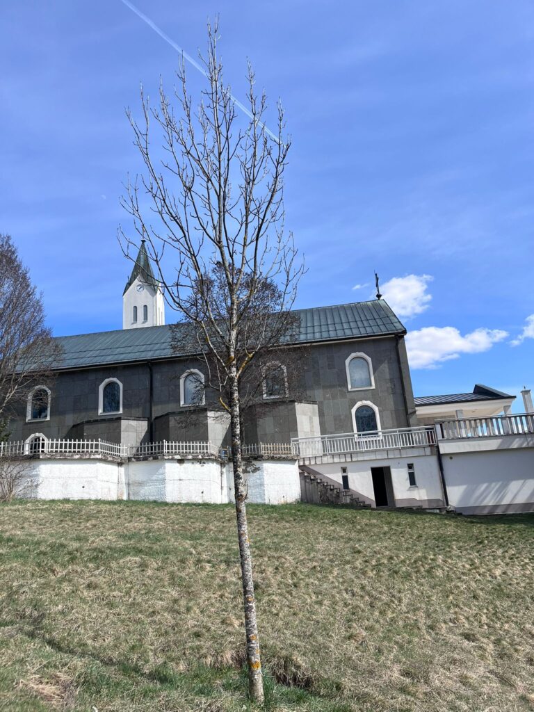 Prvu župnu kuću započeo je graditi duvanjski župnik fra Petar Knežević (župnik 1862-66), a dovršio prvi šuički župnik fra Paško Radoš (župnik 1864-74). Nova župna kuća sagrađena je 1931. Uz veće ili manje popravke ili preinake služi župnicima do danas. Prvu crkvu sagradio je također fra Paško Radoš. Bila je od kamena, a dovršena je 1872. Zvonik joj je sagrađen tek 1962. Stara je crkva bila porušena 1969, a na njezinu mjestu ubrzo je bila sagrađena nova, današnja crkva. Uz nju je 1970. sagrađena i kapelica i vjeronaučna učionica. Potom je crkva uređivana iznutra. Crkva je temeljito preuređena neposredno prije Domovinskog rata, potom oštećena, pa nakon rata opet uređivana. U najnovije vrijeme vrlo je lijepo uređena iznutra. Obnovljena je potpuno i župna kuća. U crkvenoj livadi uređen je Put križa.