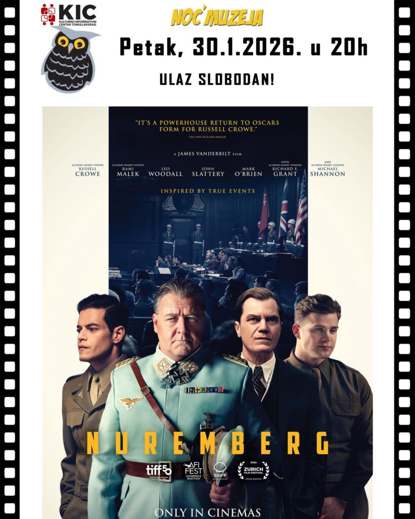 A u našoj kino-dvorani u 20:00 sati SLOBODAN ULAZ na filmsku poslasticu povijesnu dramu ”Nuremberg”, kao poklon našim kinoljupcima.