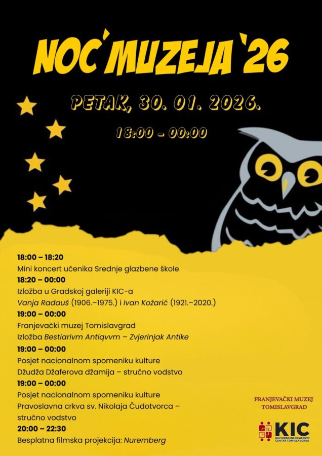 Kulturno-informativni centar, u suradnji s Franjevačkim muzejom Tomislavgrad, i ove godine organizira već tradicionalnu, a ove godine jedanaestu po redu Noć muzeja, u petak, 30. siječnja 2026. godine.
