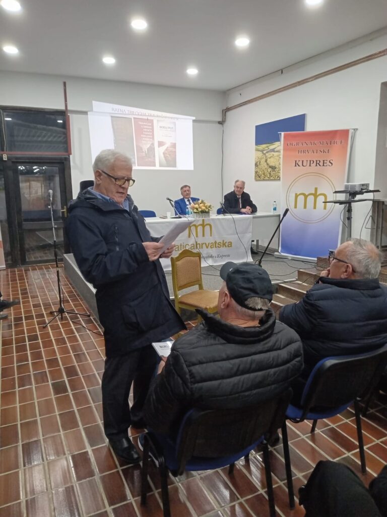 Program je moderirao arhitekt i pjesnik Zdenko Antunović, dok su o knjizi govorili prim. dr. Vlado Tabak, kirurg i ratni doministar zdravstva u Vladi HRHB, prof. Mijo Tokić, ratni načelnik Tomislavgrada, te akademik i književnik Anto Stanić.