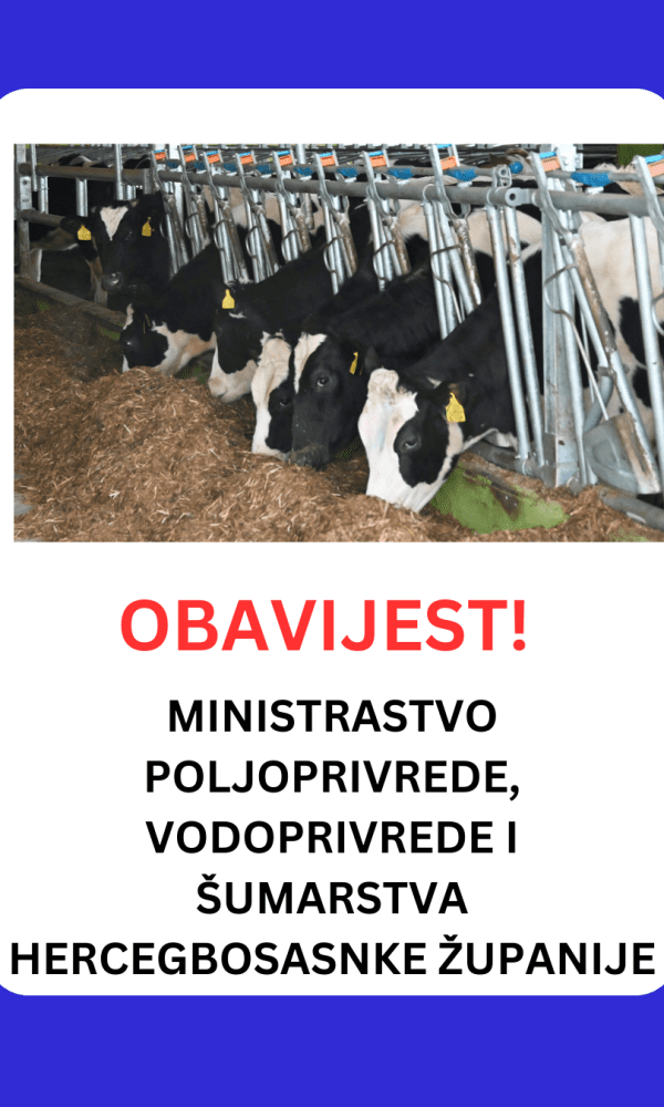 Obavijest o pojavi antraksa na području Bosanskog GrahovaRedakcija02.09.2025Ministarstvo poljoprivrede, vodoprivrede i šumarstva Hercegbosanske županije zaprimilo je prijavu ... Pročitaj više