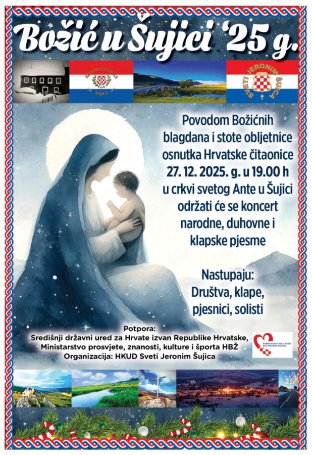 U povodu božićnih blagdana, na blagdan Svetog Ivana, 27. prosinca 2025. godine, u 19 sati, u župnoj crkvi sv. Ante u Šujici održat će se tradicionalni koncert „Božić u Šujici 2025.“.
