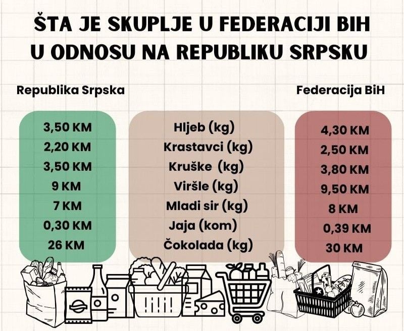 Izvor: Cijene hrane u Federaciji BiH i Republici Srpskoj, evo gdje je skuplje | Vijesti Hercegovina.Info