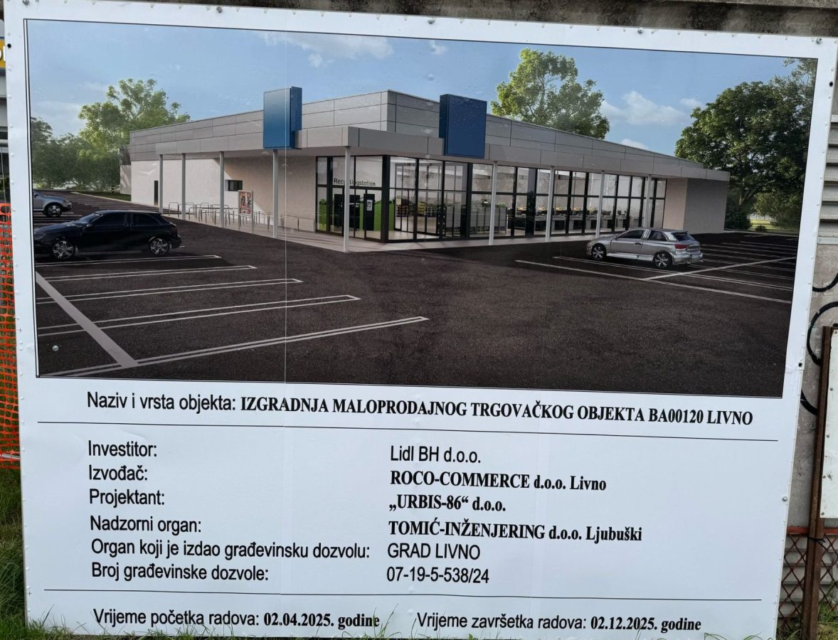 Livanjski LIDL nalazit će se na lokaciji između Vokela i Euroherca, na Aveniji dr. Franje Tuđmana, na mjestu garaža nekadašnjeg prijevozničkog giganta Bosna-Livno. Projektant modernog zdanja je tvrtka Urbis-86 d.o.o. Široki Brijeg, a radove izvodi domaća livanjska tvrtka Roco-commerce d.o.o. Livno. Nadzor provodi Tomić-inženjering d.o.o. Ljubuški. Očekivani rok završetka radova je 2.12.2025. godine, tako da usprkos najavama za otvorenjem u 2027. godini ipak možemo očekivati nešto raniji dolazak LIDL-a u naš grad.