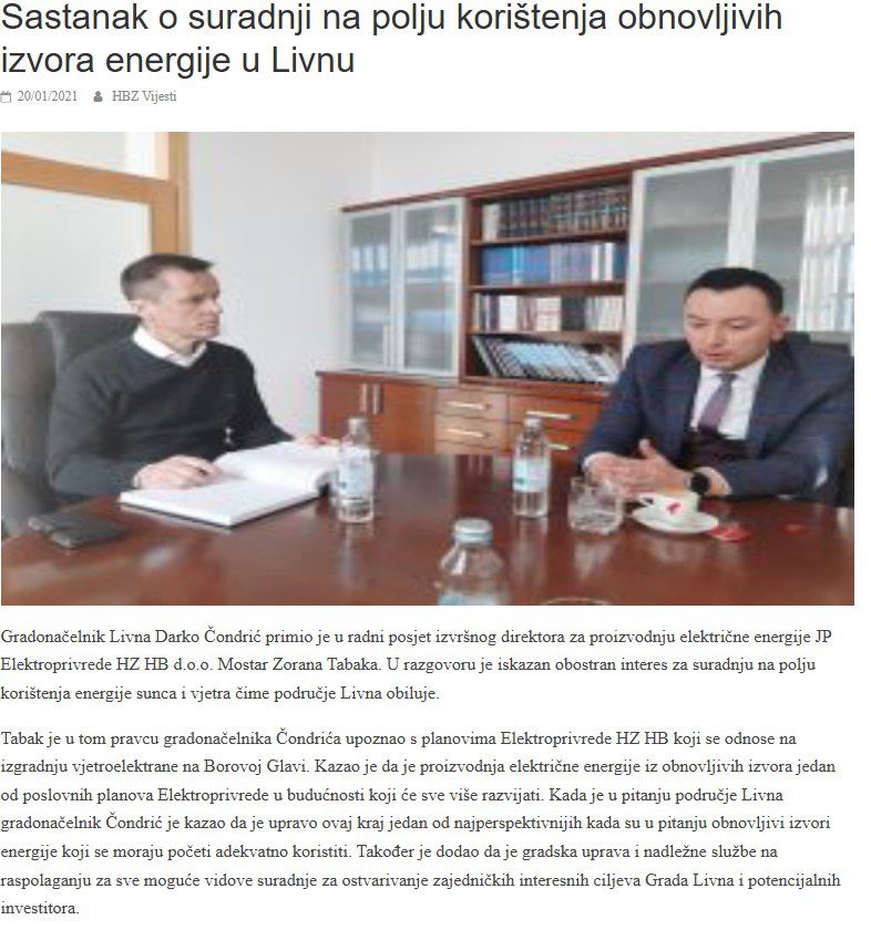 Razlog za to vjerojatno leži u činjenici da dužnosnici HDZ-a BiH snažno podržavaju razvoj projekata vjetroelektrana na području Kruga, a dokaz za to su i sastanci koje je gradonačelnik održao s predstavnicima Elektroprivrede HZ-HB o iskorištavanju vjetropotencijala.