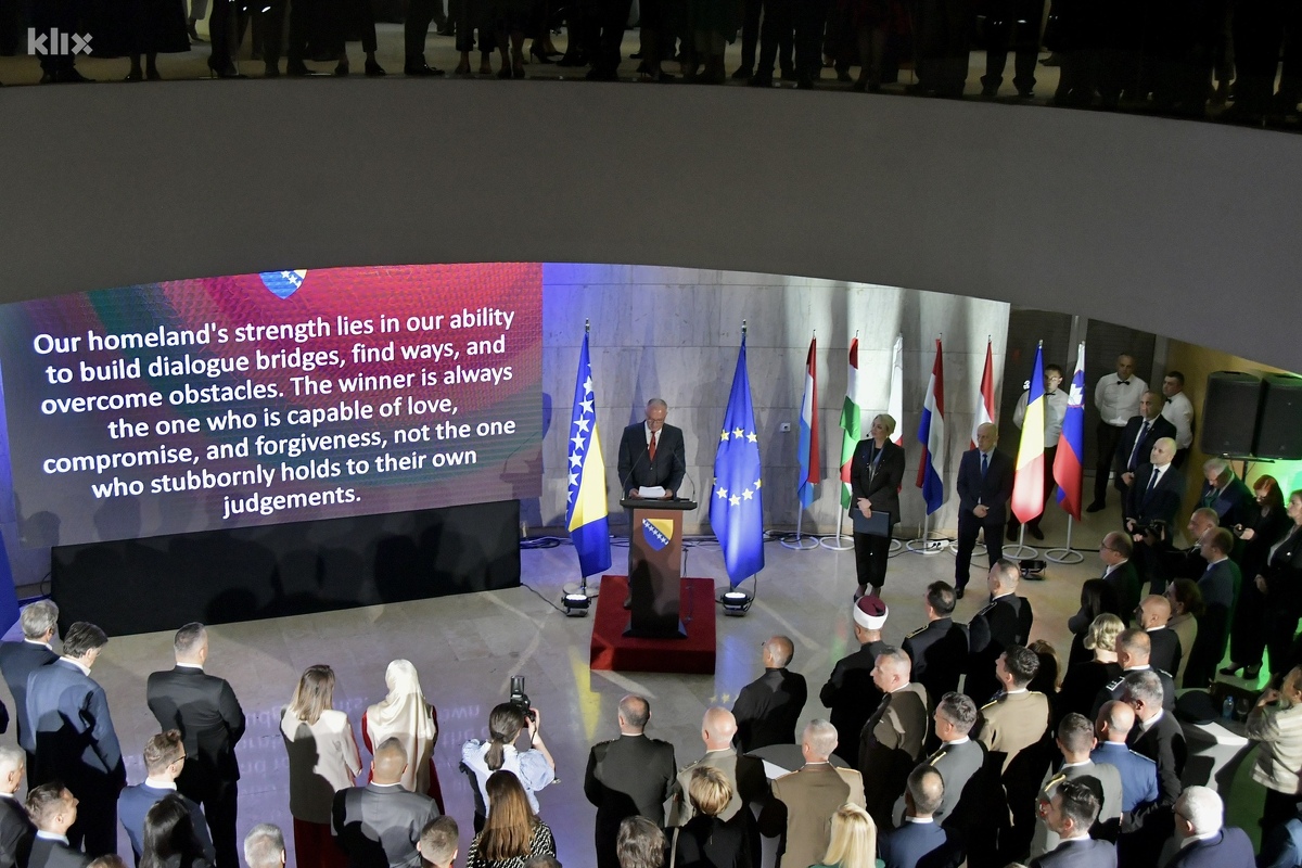 “Današnji skup je prilika za sve nas u BiH da se prisjetimo svega onog što smo zajedno postigli u proteklom vremenu, a postigli smo puno, posebno u kontekstu približavanja EU. Neka nas ovi uspjesi dodatno ohrabre i motivišu kako bi nastavili i dalje raditi na izgradnji stabilne, sigurne i prosperitetne BiH, članice EU, porodice kojoj geografski, civilizacijski i kulturološki pripadamo stoljećima. Snaga naše domovine je u našoj sposobnosti da gradimo mostove dijaloga, da iznađemo način i prevaziđemo prepreke. Pobjednik je uvijek onaj koji je sposoban da voli, popušta i oprašta, a ne onaj ko se svojeglavo drži svojih procjena”, rekao je Helez.