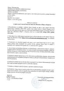 Obavijest o upisu u prvi razred Osnovne škole fra Miroslava Džaje u Kupresu