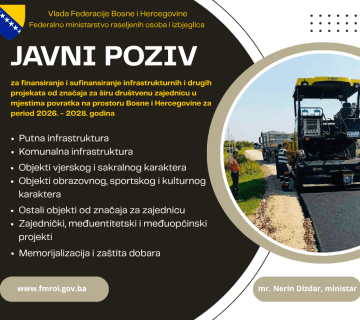 Dodaju da je Javni poziv otvoren 15 dana od dana posljednje objave u sredstvima javnog informisanja, a tekst poziva i prijavni obrazac dostupni su na linku: https://fmrsp.gov.ba/transfer-za-sufinansiranje-rada-programa-i-projekata-socijalne-zastite/.