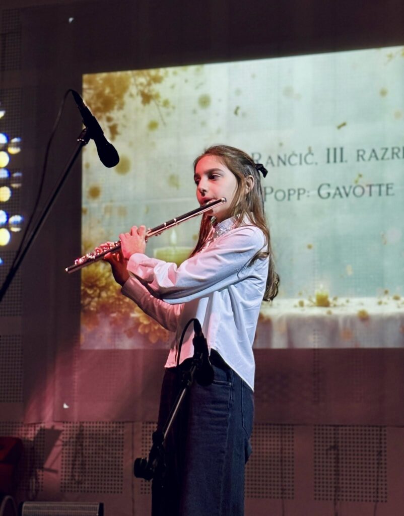 U Osnovnoj glazbenoj školi “Franjo S. Vilhar” Livno sinoć su održana dva koncerta – koncert učenika flaute u klasi prof. Narcisa Zečića, kojem se pridružila i učenica violine iz klase prof. Ajle Ahmetović, te koncert učenika klarineta i saksofona u klasama prof. Martine Ćato i prof. Rafaela Andabaka.