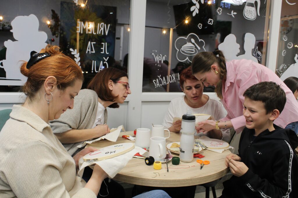 Prostor je bio ispunjen osmijesima, kreativnom energijom i zajedništvom, a polaznici su tijekom večeri izrađivali božićne ukrase i družili se u opuštenom, kreativnom okruženju.