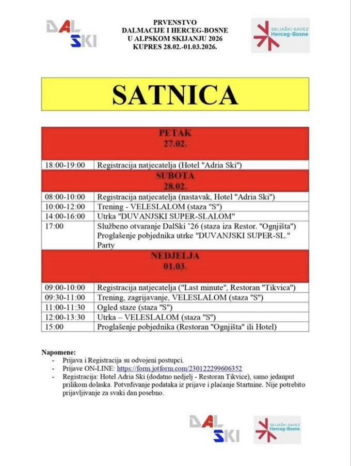 Dan će kulminirati u 17:00 sati službenim otvaranjem DalSki ’26 manifestacije iza restorana “Ognjišta”. Uz proglašenje pobjednika subotnje utrke, organiziran je i prigodni party za sve sudionike i posjetitelje.