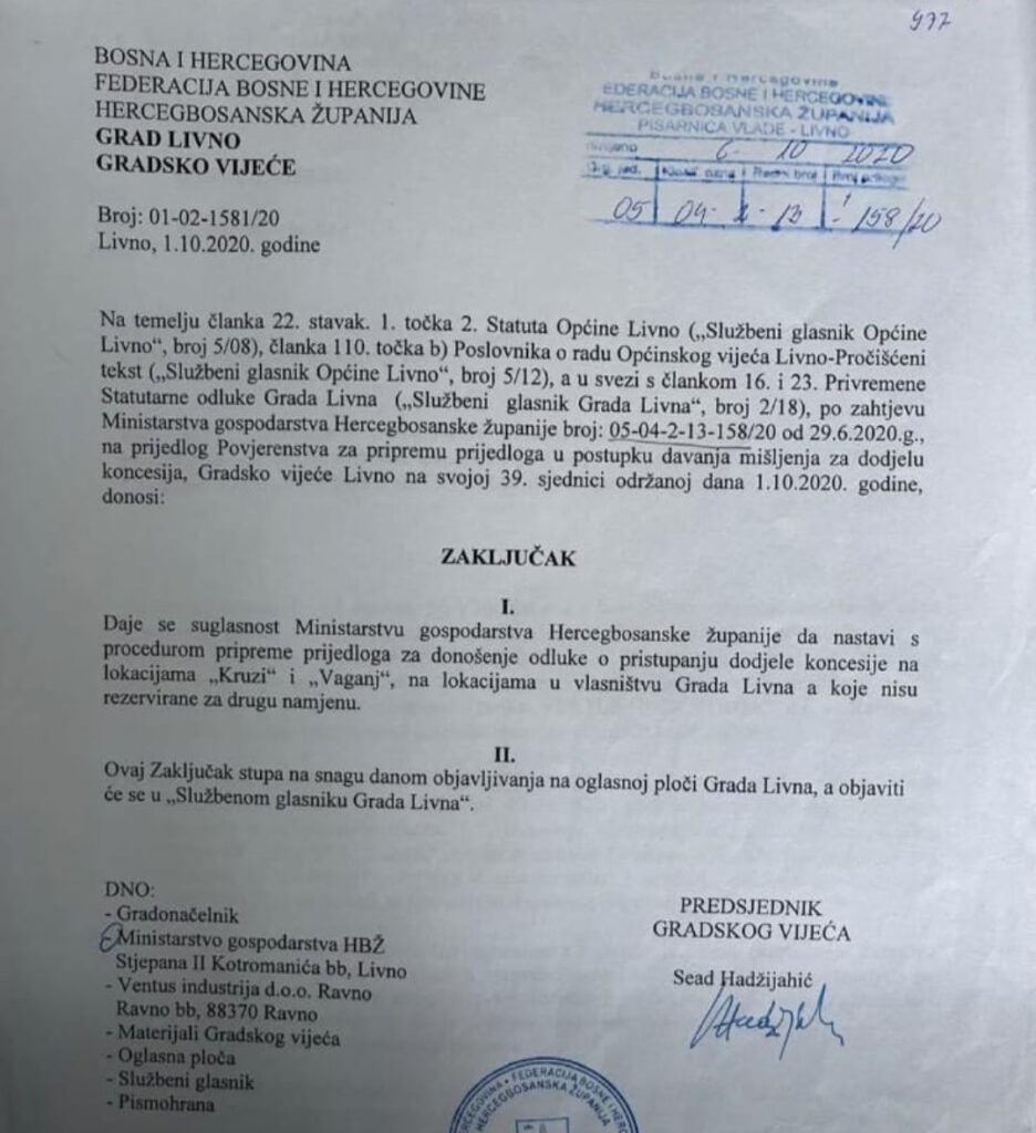 Prema navodima NGG “Spasimo naš kraj”, tvrtka DAH PLANINE d.o.o. Livno trenutačno nema važeći koncesijski ugovor s Hercegbosanskom županijom, dok su se u javnosti pojavili i dokumenti koji ukazuju na prethodne suglasnosti Grada Livna vezane uz koncesije i postavljanje mjernih stupova.