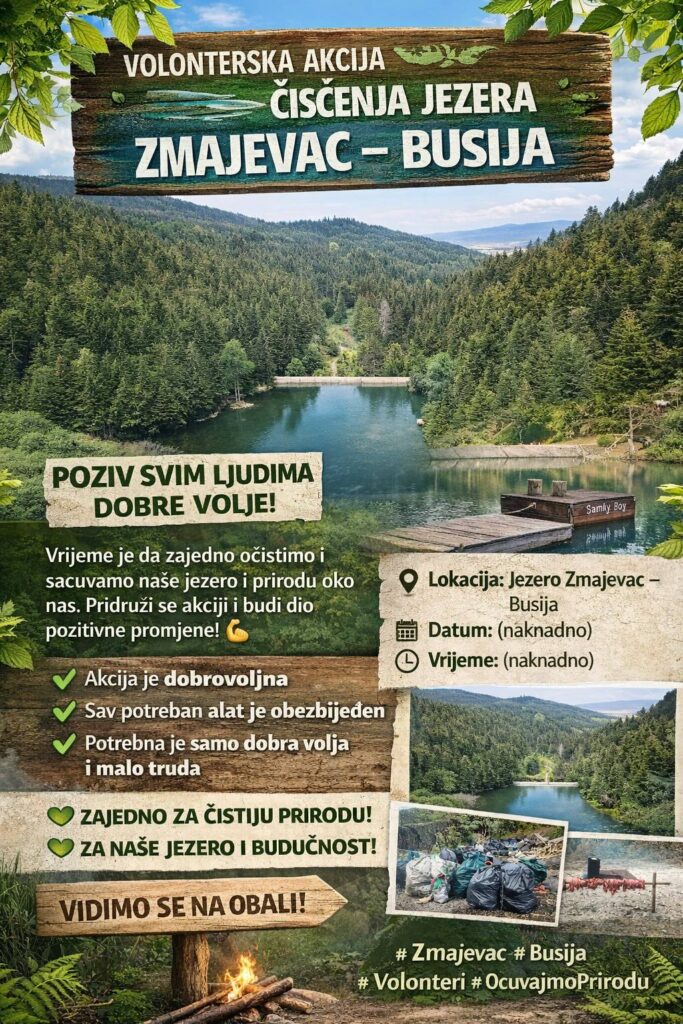 Na području Busije organizira se velika volonterska akcija čišćenja i uređenja jezera Zmajevac, s ciljem očuvanja prirode i stvaranja ljepšeg ambijenta za sve posjetitelje.